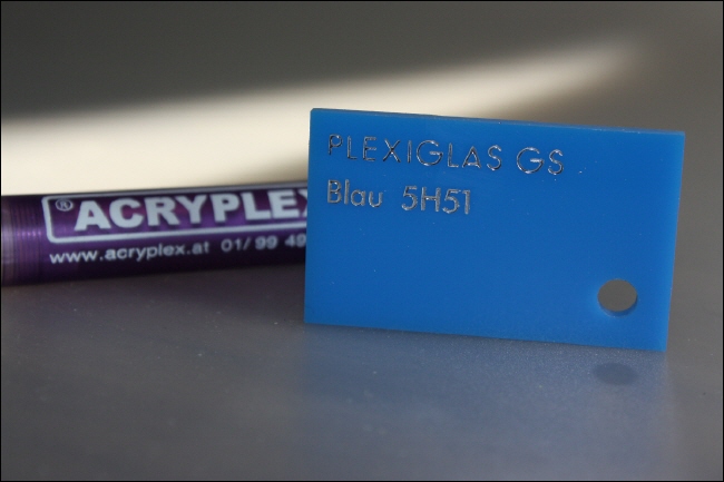 Plexiglas blau 5H51 Dieses Foto ist gedacht um Ihnen einen Farbeindruck zu vermitteln. Für den genauen Farbeindruck wie zB Glanz und Lichtdruchlässigkeit ist ein direktes betrachten auf der Plexiglas ® Musterkette notwendig. |