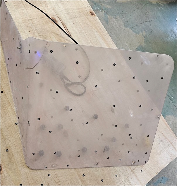 Bootsscheibe aus Acrylglas als Muster Diese, in die Jahre gekommene Acryl Bootsscheibe soll Maßgenau neu angefertigt werden. |